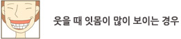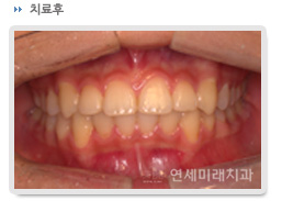 ¿ôÀ» ¶§ ÀÕ¸öÀÌ ¸¹ÀÌ º¸ÀÌ´Â °ÍÀ» Gummy smile À̶ó°í Çϸç, ¿øÀÎÀ¸·Î´Â »ó¾Ç°ñÀÇ ¼öÁ÷ÀûÀÎ °úÀ×, »ó¾Ç ÀÕ¸öÀÇ °úÁõ½Ä, ¼öÁ÷ÀûÀ¸·Î ªÀº ÀÀÔ¼ú, ¿ôÀ»¶§ ÀÀÔ¼ú¿¡ ÀÛ¿ëÇÏ´Â ±ÙÀ°ÀÇ °úȰ¼ºµîÀÌ ÀÖÀ¸¸ç ¿øÀο¡ µû¶ó¼ °¢±â ´Ù¸¥ Ä¡·á¹æ¹ýÀÌ Àû¿ëµË´Ï´Ù. »çÁø¿¡¼ º¸½Ã´Â Áõ·Ê´Â »ó¾Ç Ä¡¿±ÃÀÇ ¼öÁ÷Àû °úÀ×À¸·Î ÀÎÇØ¼ ¿ôÀ» ¶§ ÀÕ¸öÀÌ ¸¹ÀÌ º¸ÀÌ´Â °æ¿ìÀÔ´Ï´Ù