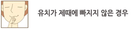 À¯Ä¡ (Á¥´Ï)´Â ¿µ±¸Ä¡°¡ ³ª¿À±â Àü±îÁö ¾Ã¾î¸Ô°í ¹ßÀ½ÇÏ´Â ±â´É ¿Ü¿¡µµ ¿µ±¸Ä¡°¡ Á¦ÀÚ¸®¿¡ ³ª¿Ã ¼ö ÀÖµµ·Ï °ø°£À» È®º¸ÇØ ÁÖ´Â Áß¿äÇÑ ±â´ÉÀÌ ÀÖ½À´Ï´Ù. À¯Ä¡°¡ Á¶±â¿¡ ºüÁö°Å³ª, ³Ê¹« ´Ê°Ô ºüÁö´Â °Í ¸ðµÎ ¿µ±¸Ä¡ÀÇ ¸ÍÃâ¿¡ ¿µÇâÀ» ¹ÌÄ¡°Ô µË´Ï´Ù. À¯Ä¡¿¡ ¹ß»ýÇÑ ÃæÄ¡¸¦ Á¦¶§¿¡ Ä¡·áÇÏÁö ¸øÇϸé, À¯Ä¡°¡ ¿¹Á¤º¸´Ù Á¶±â¿¡ Å»¶ôÇÒ °¡´É¼ºÀÌ ³ô¾ÆÁö¸ç ÀÌ´Â ¿µ±¸Ä¡ ¸ÍÃâ¿¡ ÇÊ¿äÇÑ °ø°£ÀÇ ¼Ò½Ç·Î À̾îÁ® À§ »çÁø°ú °°ÀÌ ¾î±Ý´ÏºÎÀ§¿¡¼ ¿µ±¸Ä¡°¡ »ß¶Ô°Ô ³ª¿À°Å³ª ½ÉÇÑ °æ¿ì ¸ÍÃâÇÏÁö ¸øÇÒ ¼öµµ ÀÖ½À´Ï´Ù. À̸¦ ¿¹¹æÇϱâ À§Çؼ´Â À¯Ä¡¿¡ ¹ß»ýÇÏ´Â ÃæÄ¡¸¦ Á¦¶§¿¡ Ä¡·áÇØ ÁÖ¾î¾ß Çϸç, ÃæÄ¡·Î ÀÎÇØ¼ À¯Ä¡¸¦ ¹ßÄ¡ÇÏ°Ô µÇ´Â °æ¿ì¿¡´Â Ä¡°ú¿¡ ¿À¼Å¼ »ó´ãÀ» ¹ÞÀ¸½Ã´Â °ÍÀÌ ÁÁ½À´Ï´Ù.