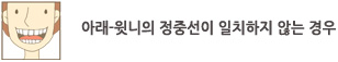 »çÁø°ú °°ÀÌ À´Ï¿Í ¾Æ·§´ÏÀÇ Á¤Áß¼±ÀÌ ÀÏÄ¡ÇÏÁö ¾Ê´Â °æ¿ì ¿øÀÎÀÌ ¾îµð¿¡ ÀÖ´ÂÁö¿¡ µû¶ó¼ Ä¡·á¹æ¹ýÀÌ ´Þ¶óÁý´Ï´Ù. ¿øÀÎÀº Å©°Ô °ñ°Ý°ü°èÀÇ ¹®Á¦, ±³ÇÕ°£¼·À¸·Î ÀÎÇÑ ±â´ÉÀû ¹®Á¦, Ä¡¾ÆÀÇ °á¼ÕÀ̳ª À¯Ä¡ÀÇ Á¶±âÅ»¶ôÀ¸·Î ÀÎÇÑ ¹®Á¦µîÀÌ ÀÖÀ» ¼ö ÀÖ½À´Ï´Ù.